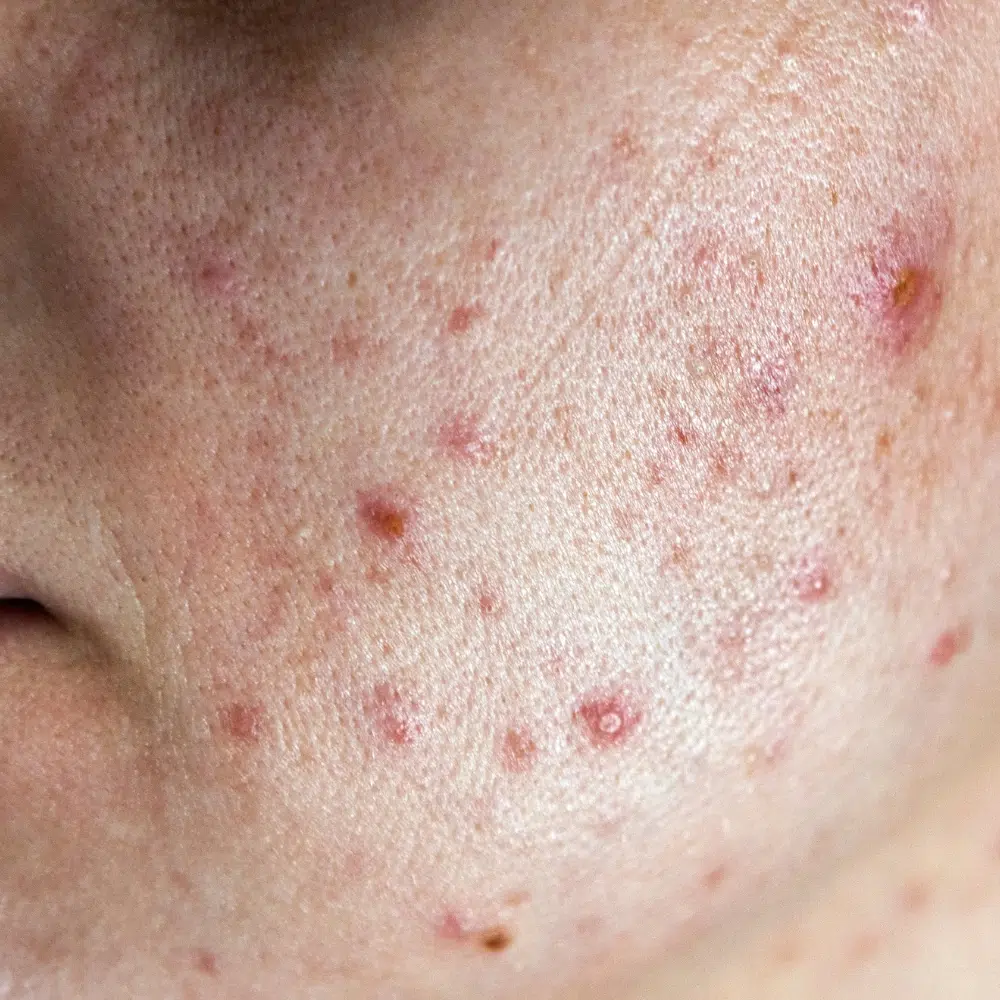 - Inflammatory lesions – red, swollen pimples that can be painful